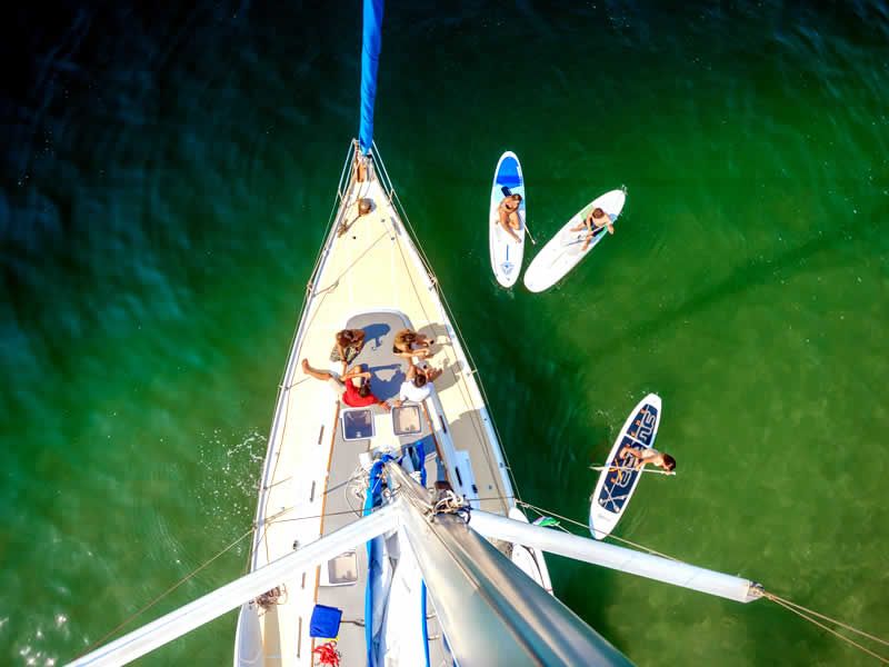 Una vez en altamar, podrías gozar de la entrañable e incomparable compañía de delfines y tortugas; o darte un chapuzón en el agua para relajarte, nadar o practicar snorkel o paddleboarding ya que este recorrido incluye todo el equipo necesario para que te sumerjas en las refrescantes aguas del mar y disfrutes de los vibrantes colores y las espectaculares formas de la fascinante vida submarina.
