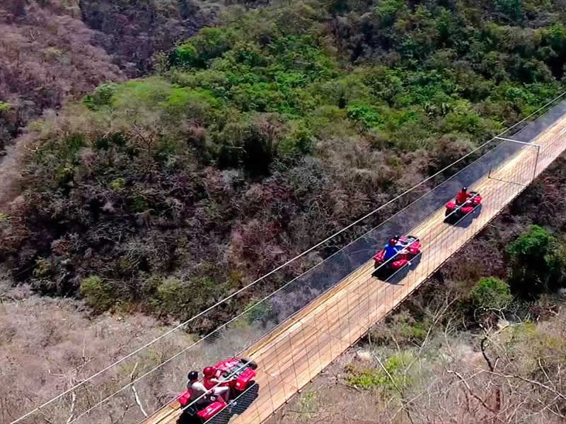 • Tour guiado a través del Puente colgante vehicular más largo del mundo a bordo de una ATV (Automática o semiautomática) y a la cascada “El Salto”.